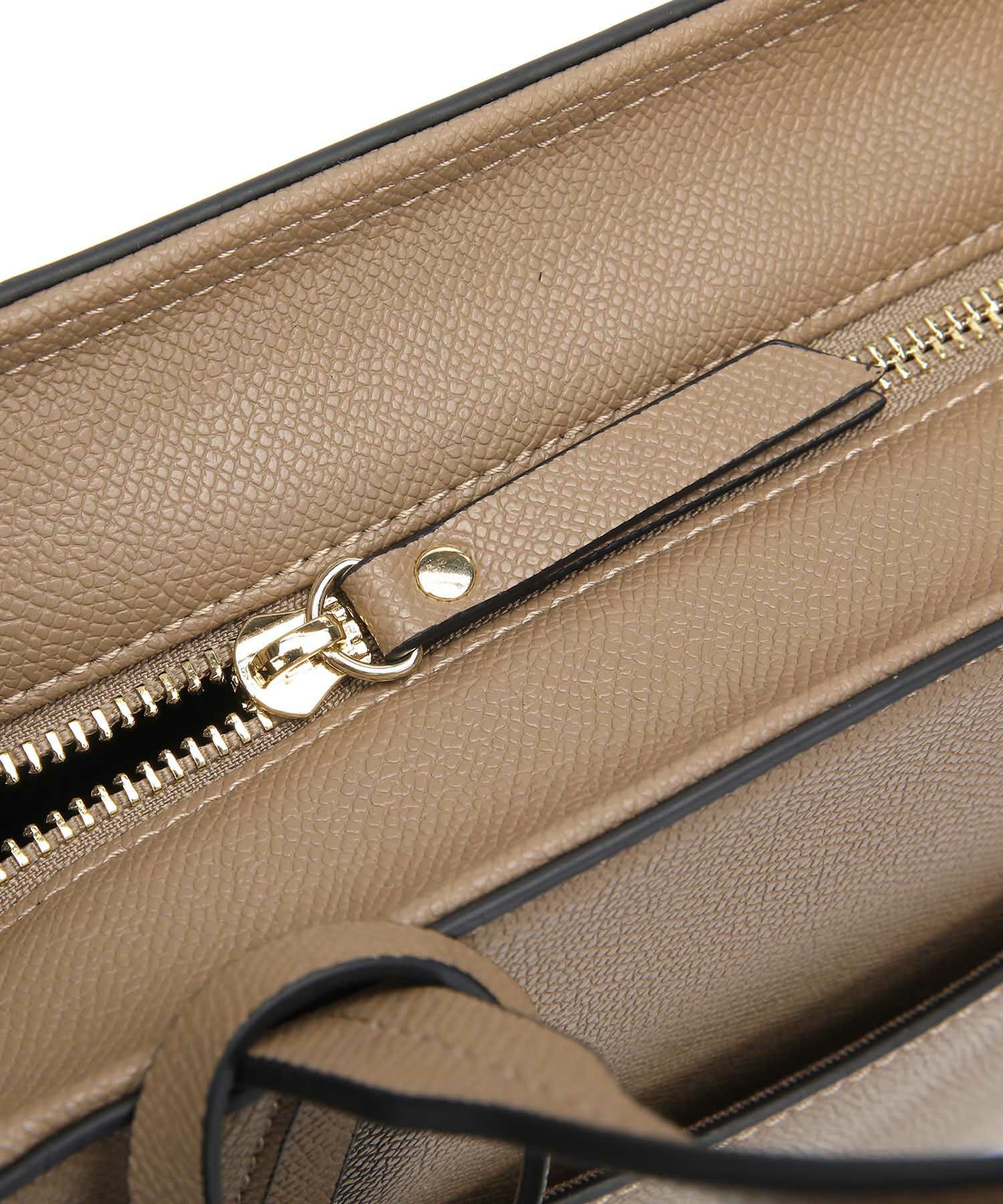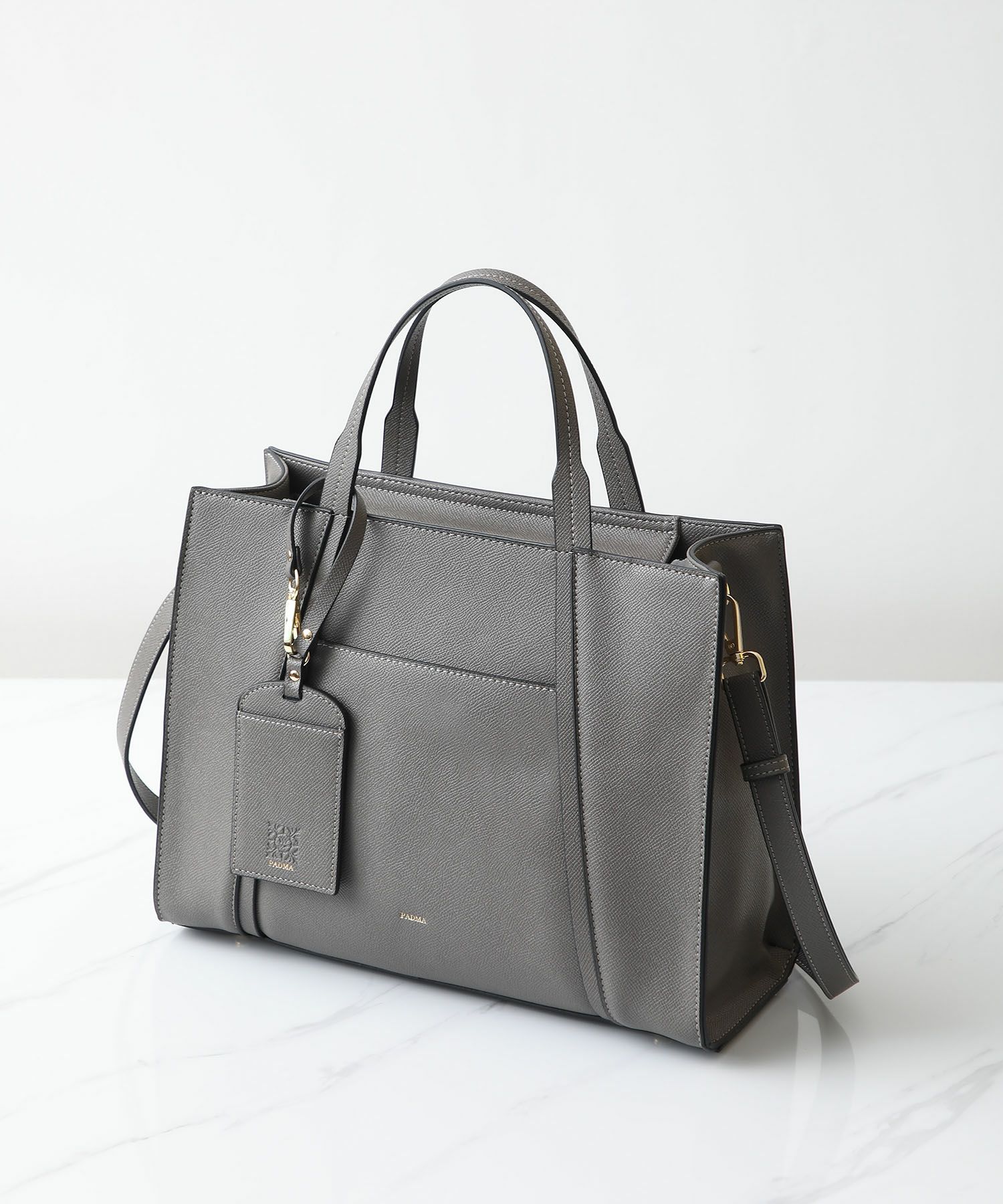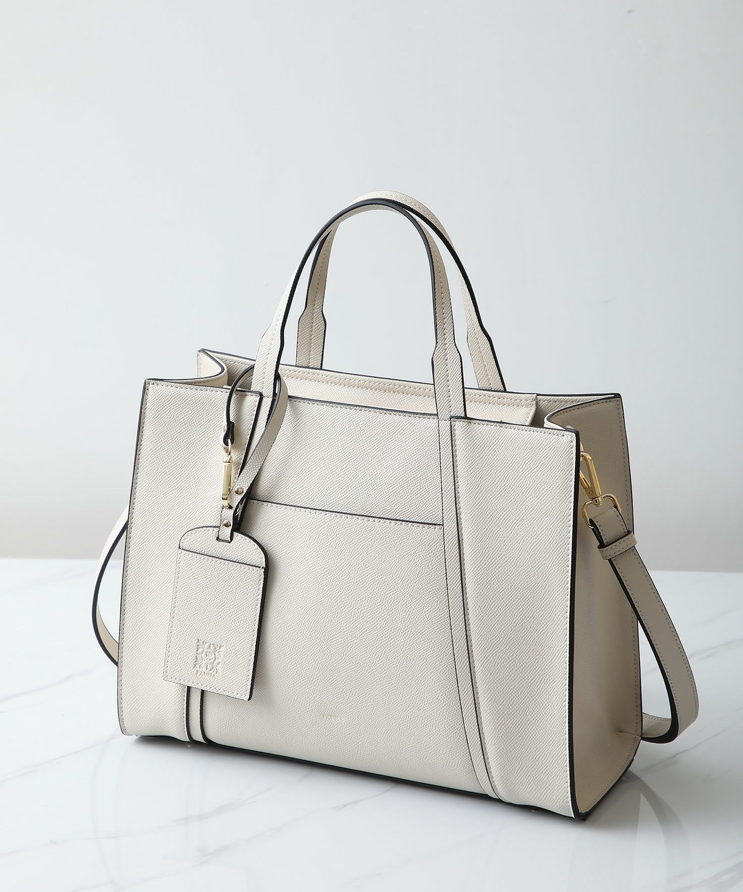 スクエア型のすっきりとしたシルエットが、きちんと感重視の通勤スタイルにもマッチしエレガントに決まります。