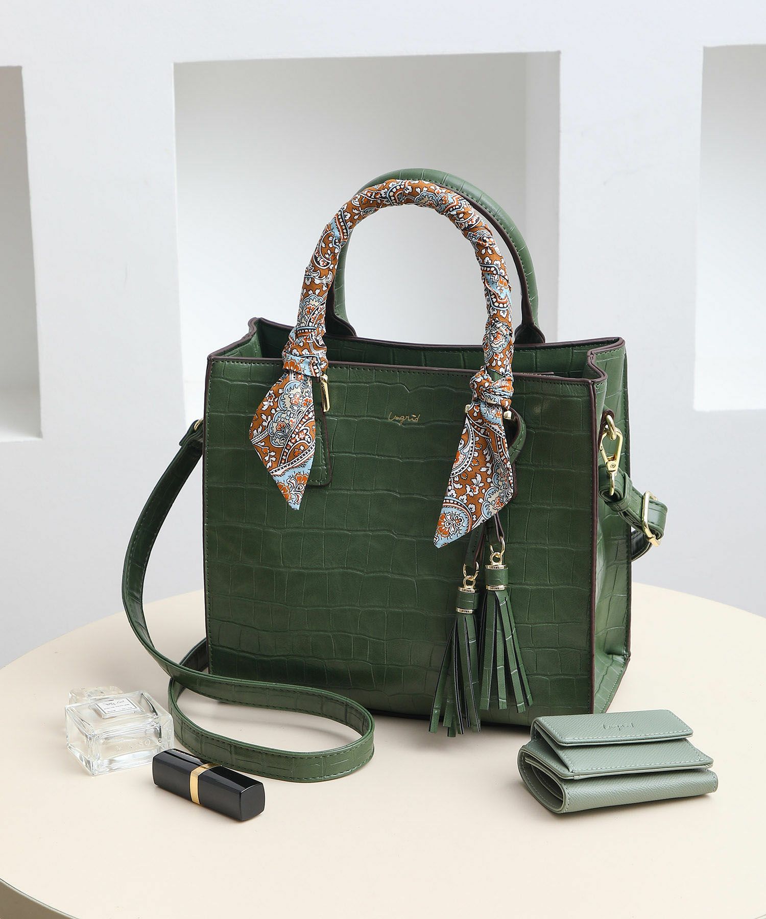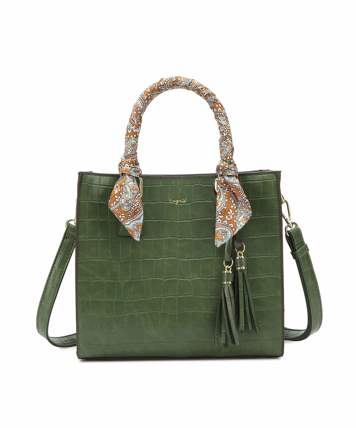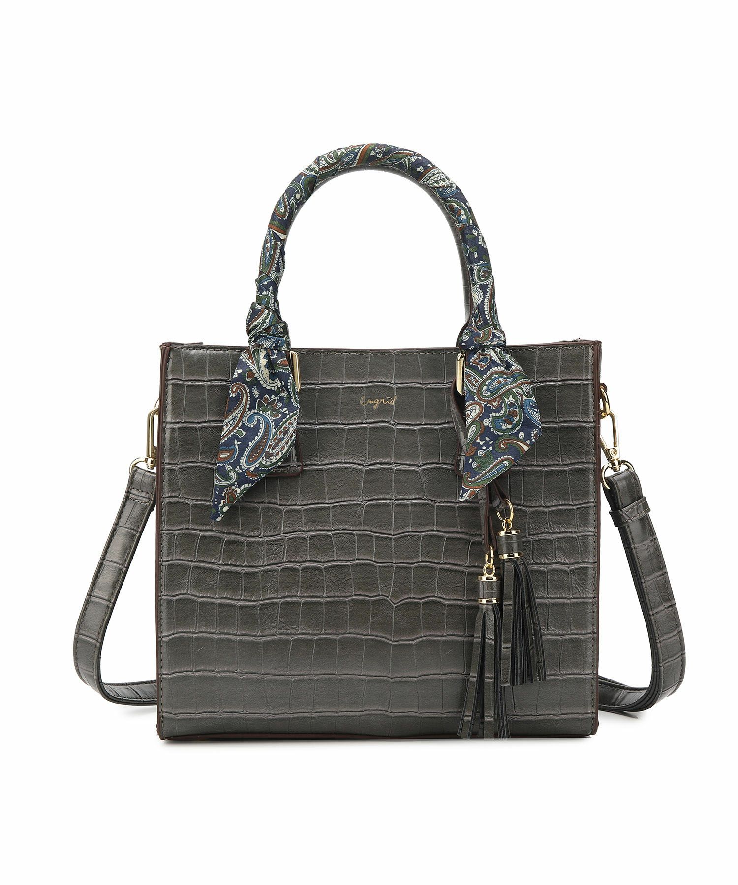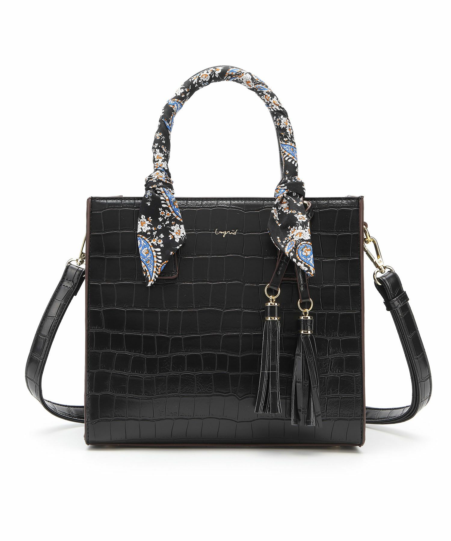 Ungrid スカーフ付クロコ アオリ スクウェアトート