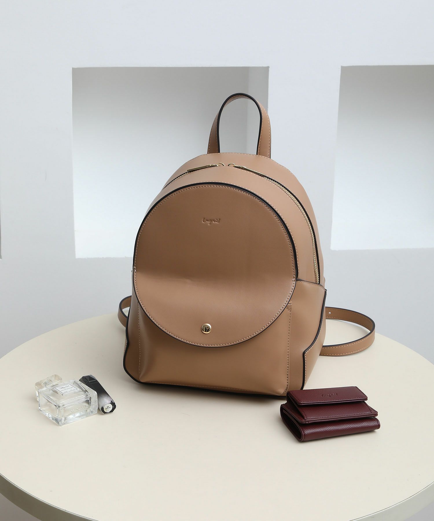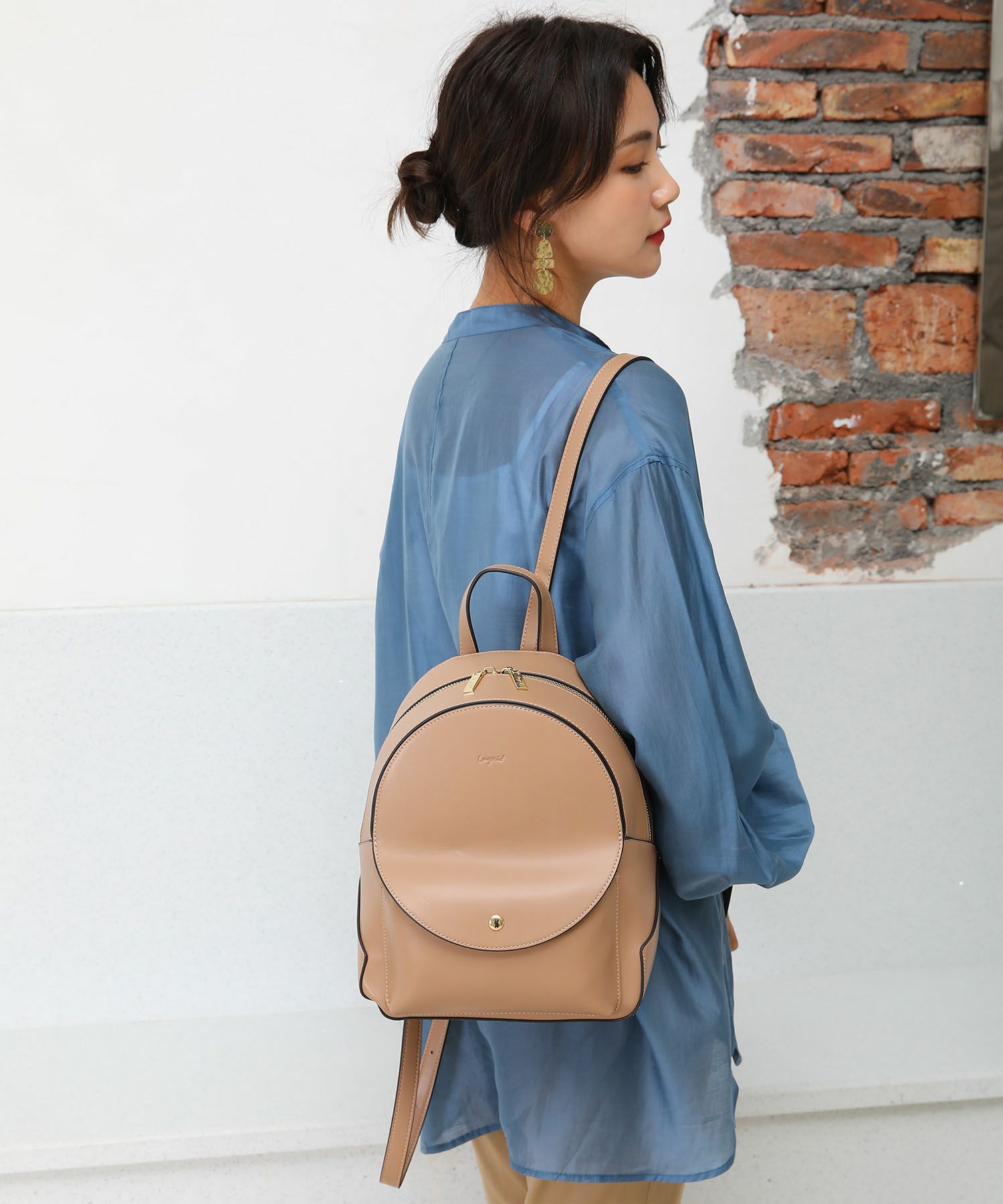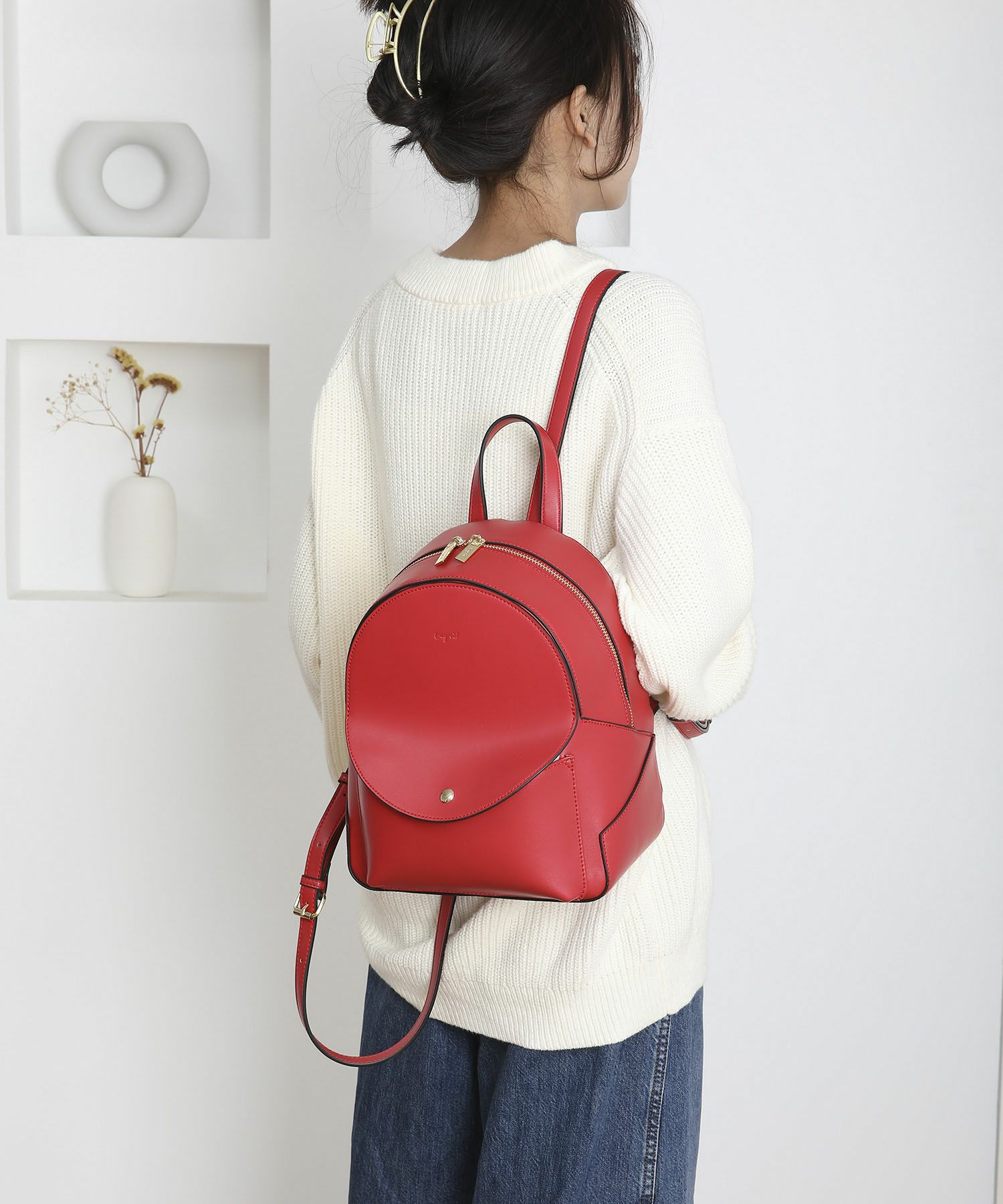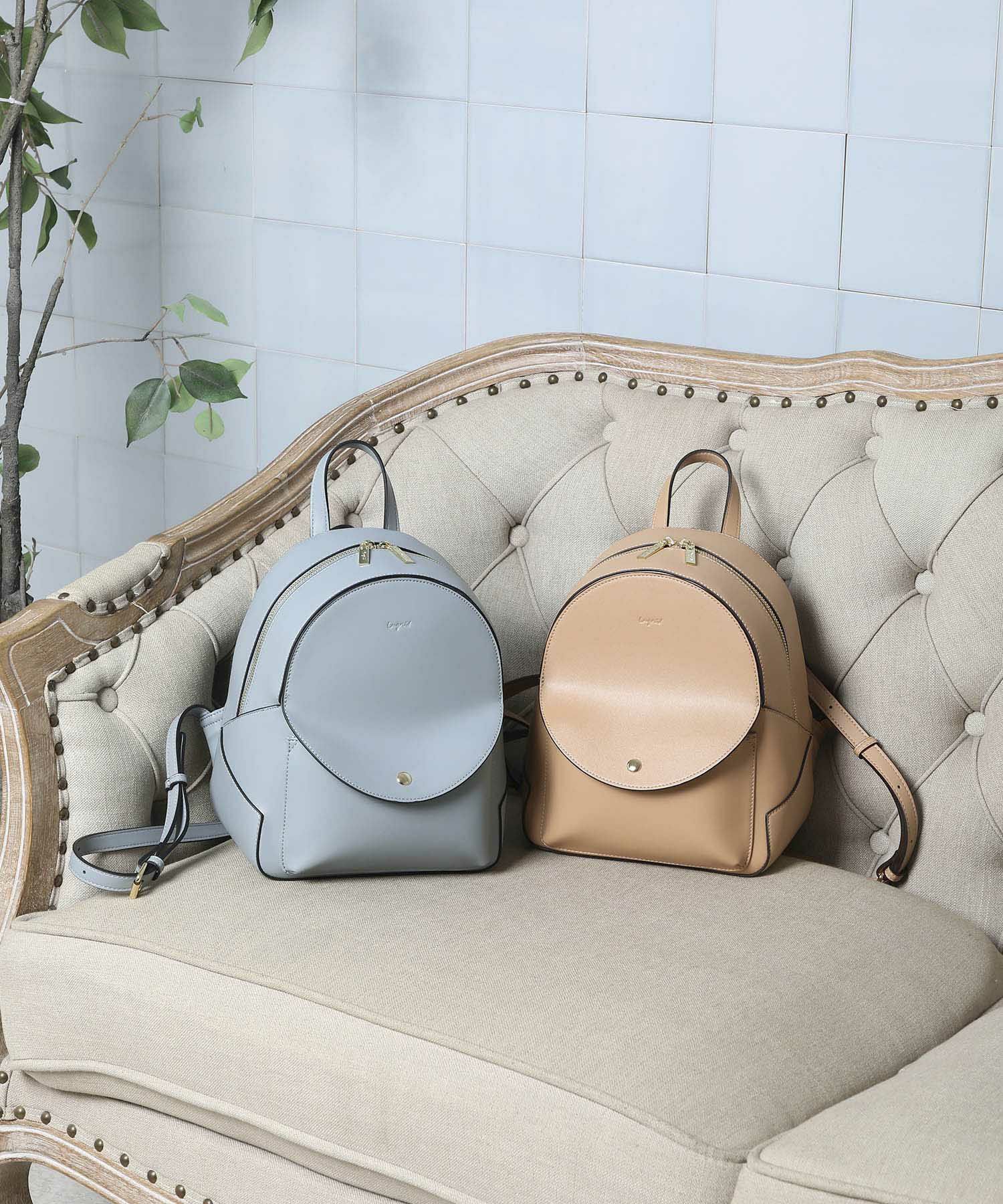 滑らかで品の良いスムース素材でコロンとしたデザインがカジュアルも可愛らしさも感じさせる万能リュック。