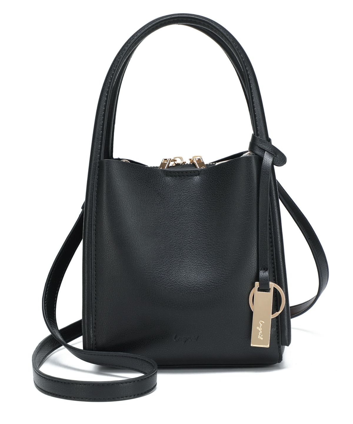 プレートキーリング付き 軽量シュリンクミディアムハンドバッグ