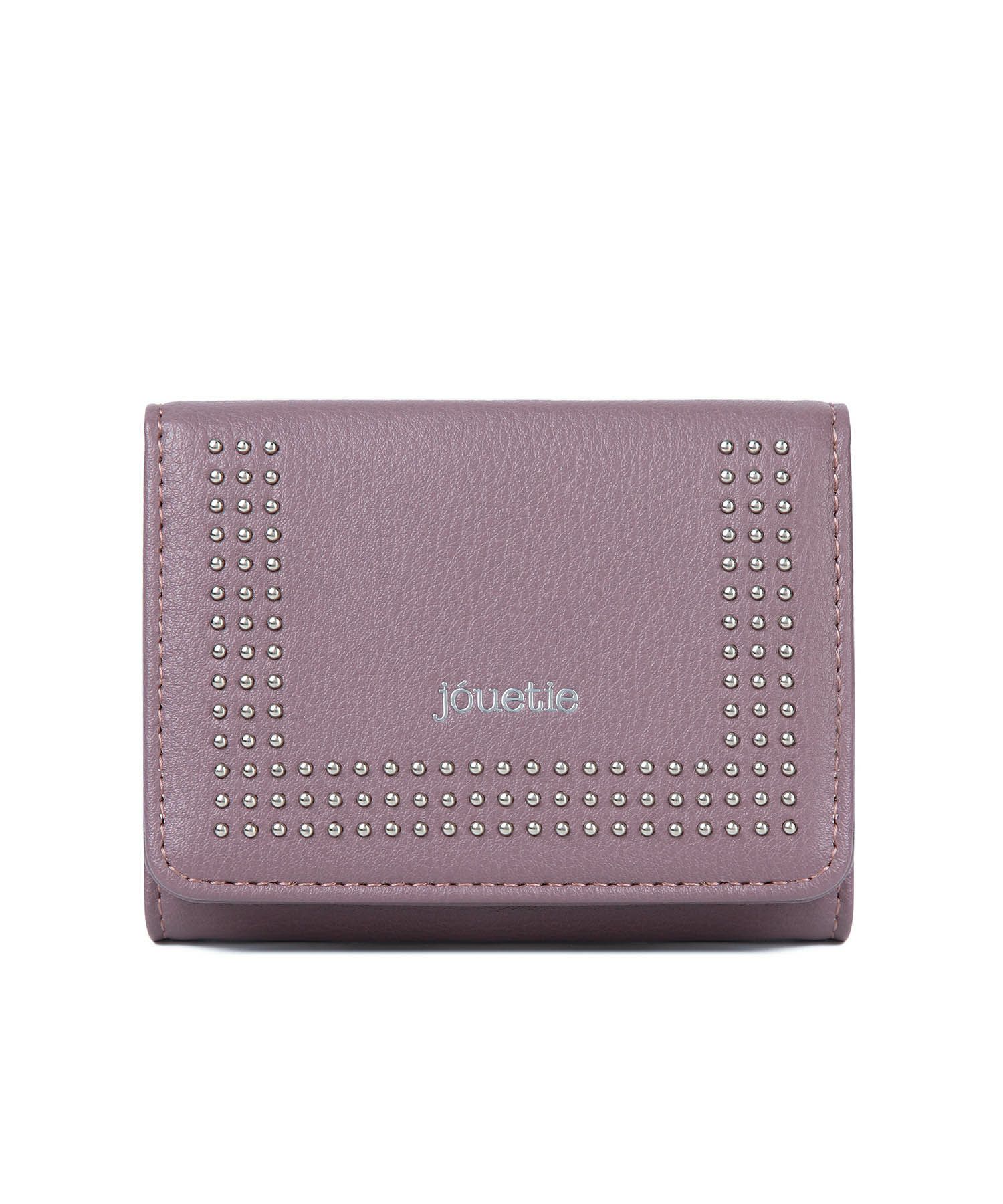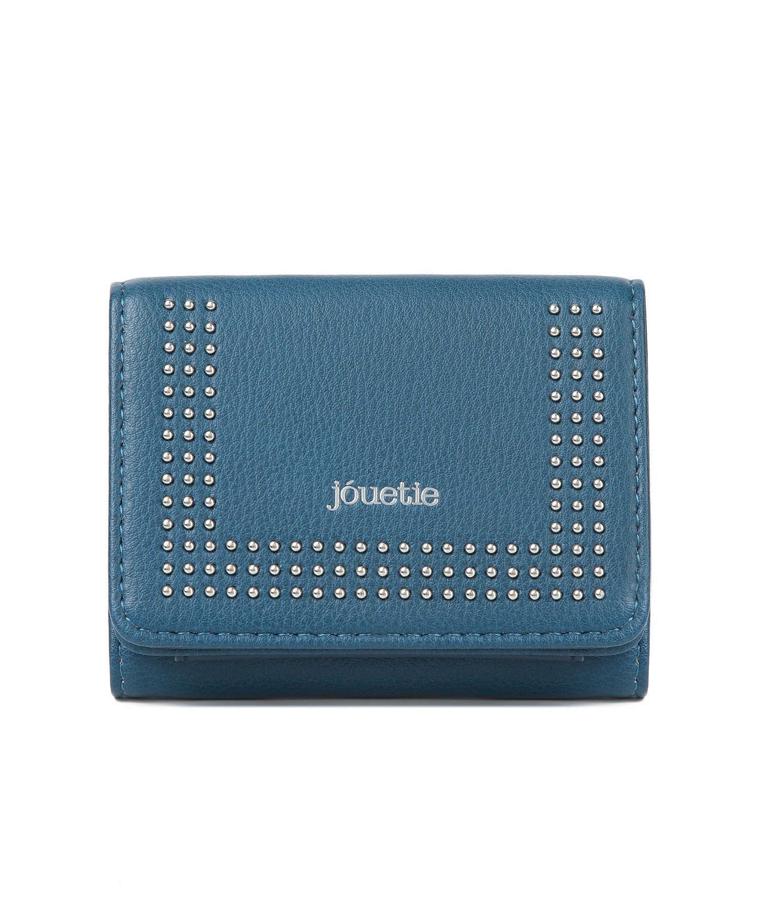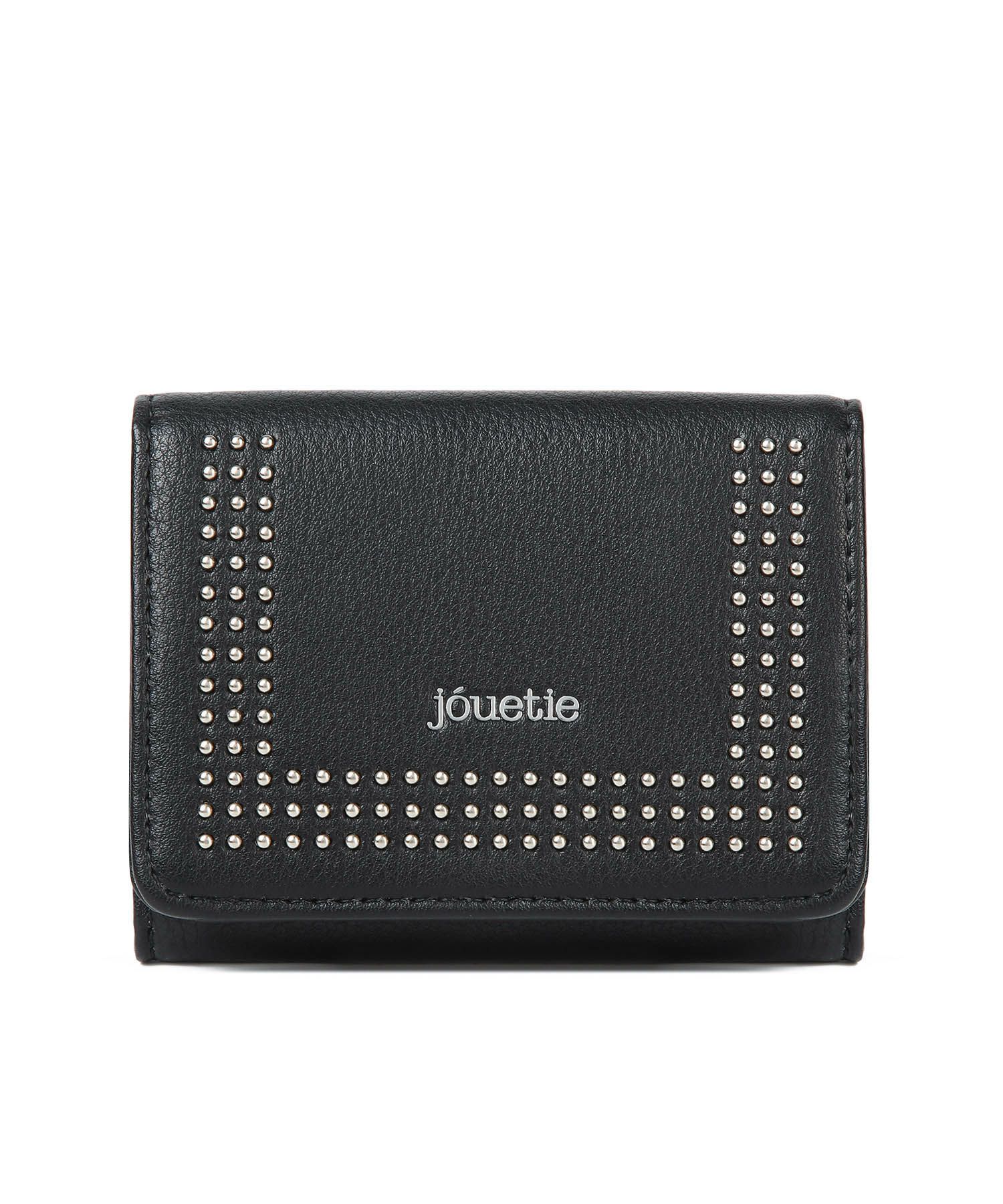 シンプルをベースにjouetieのロゴとマイクロスタッズがアクセントの三つ折りミニ財布です。