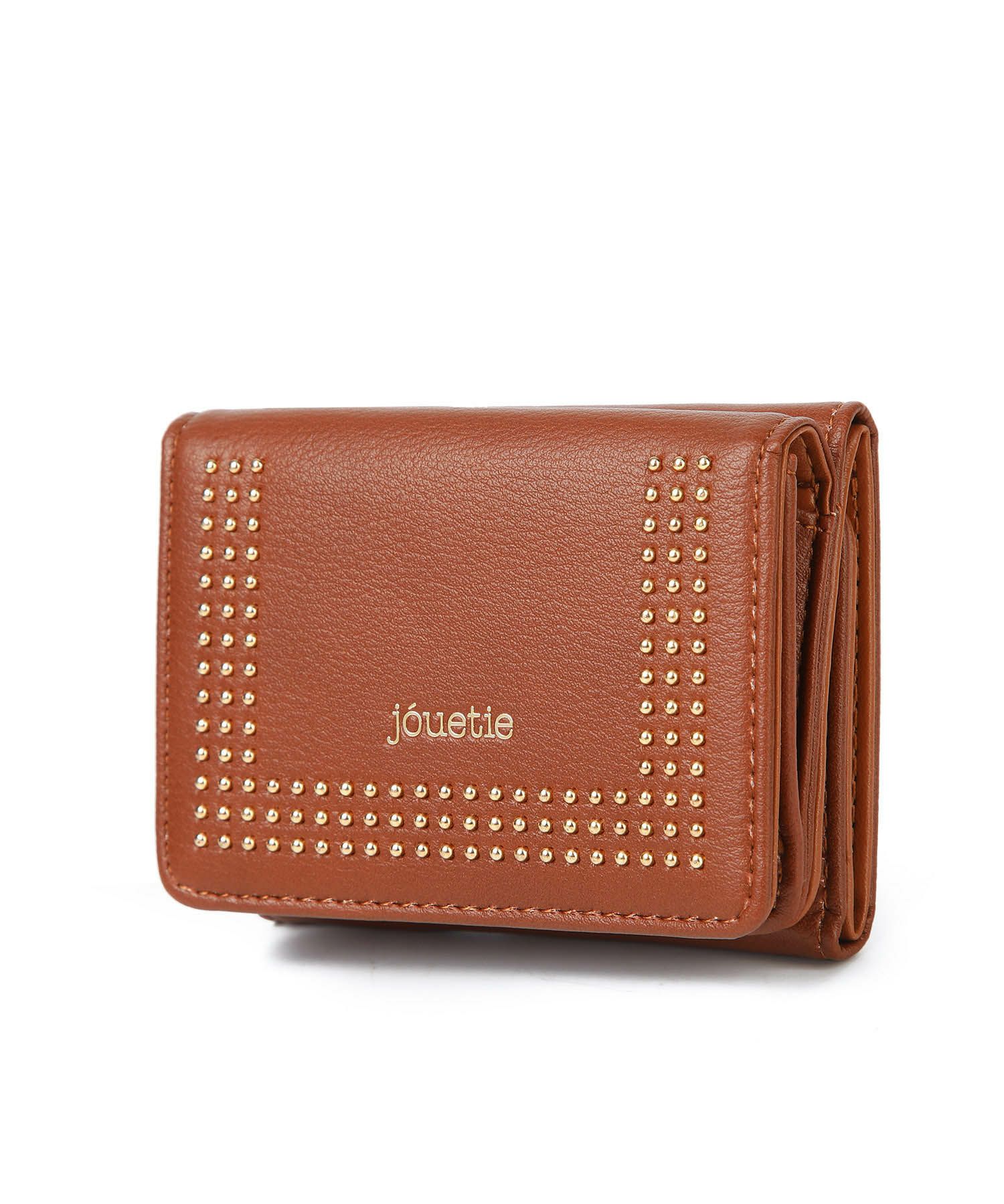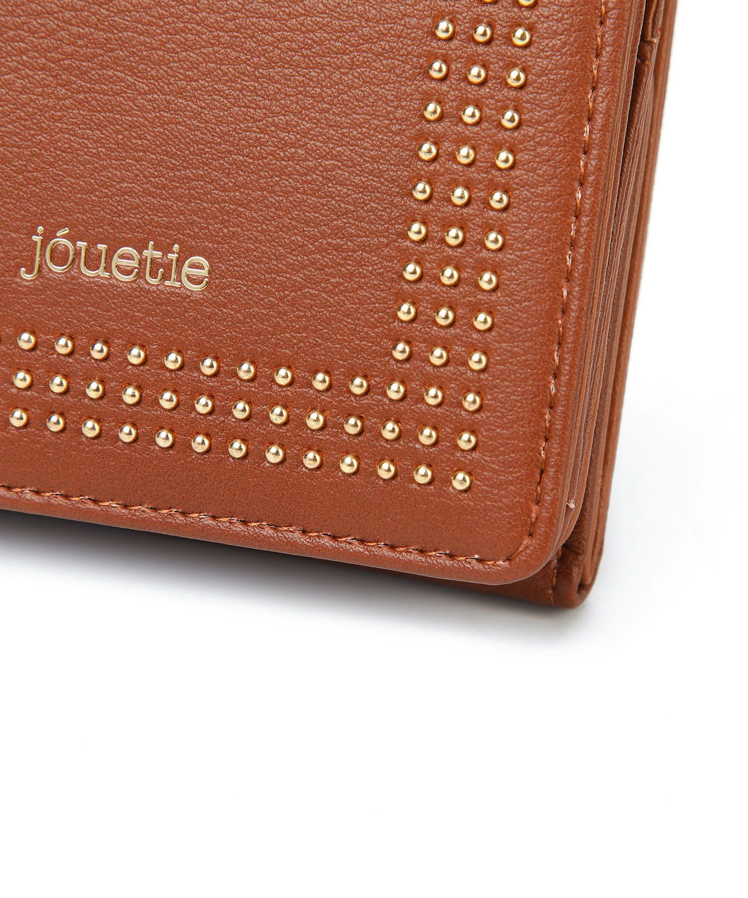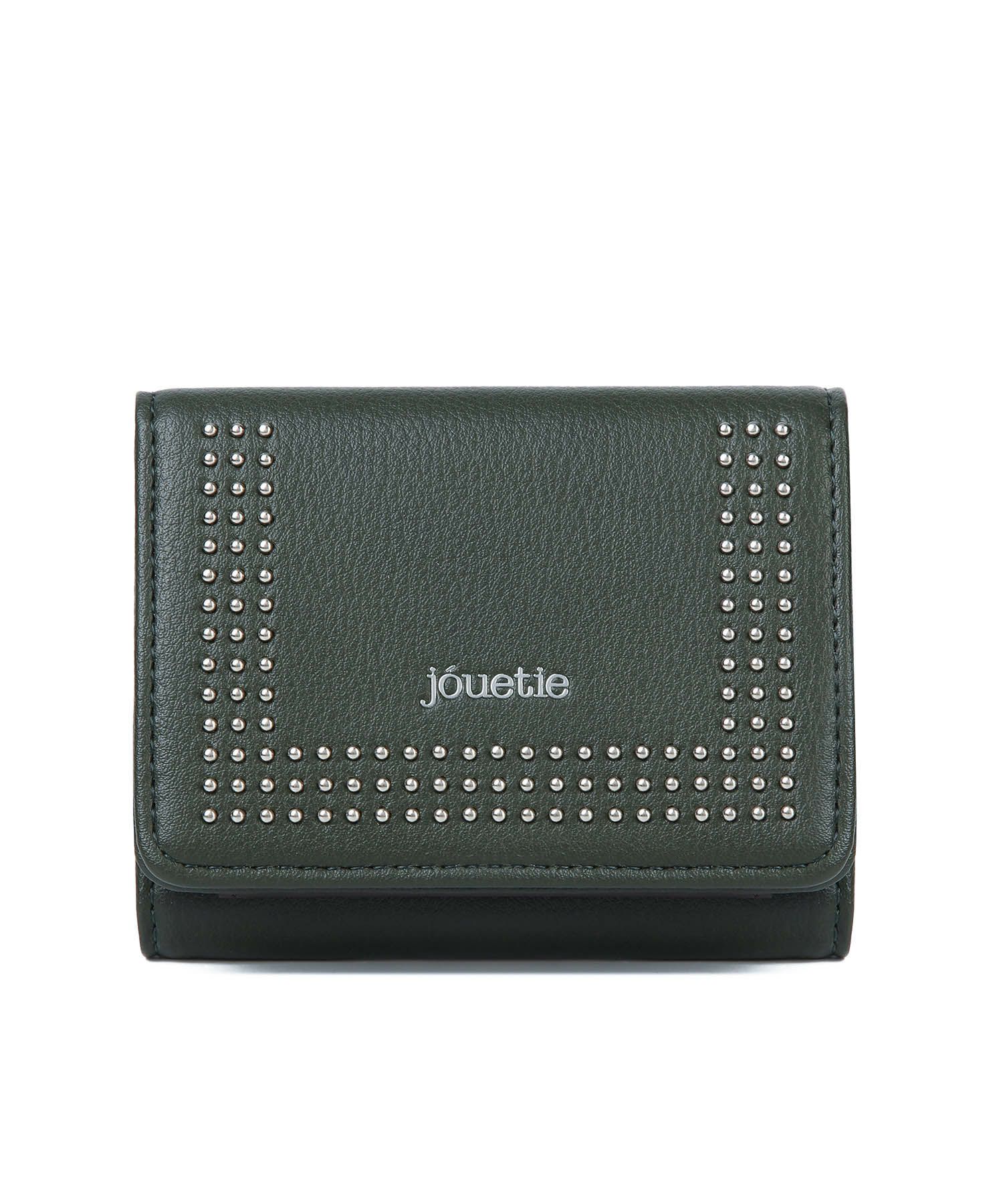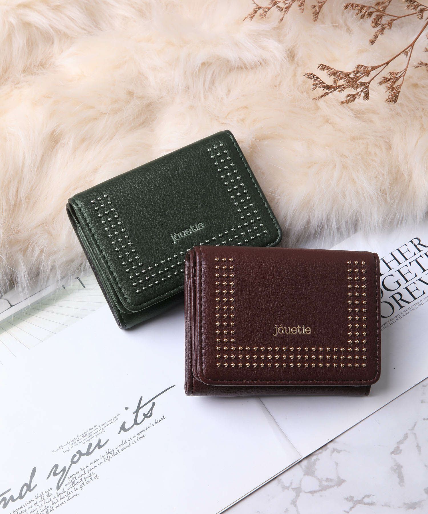 シンプルをベースにjouetieのロゴとマイクロスタッズがアクセントの三つ折りミニ財布です。