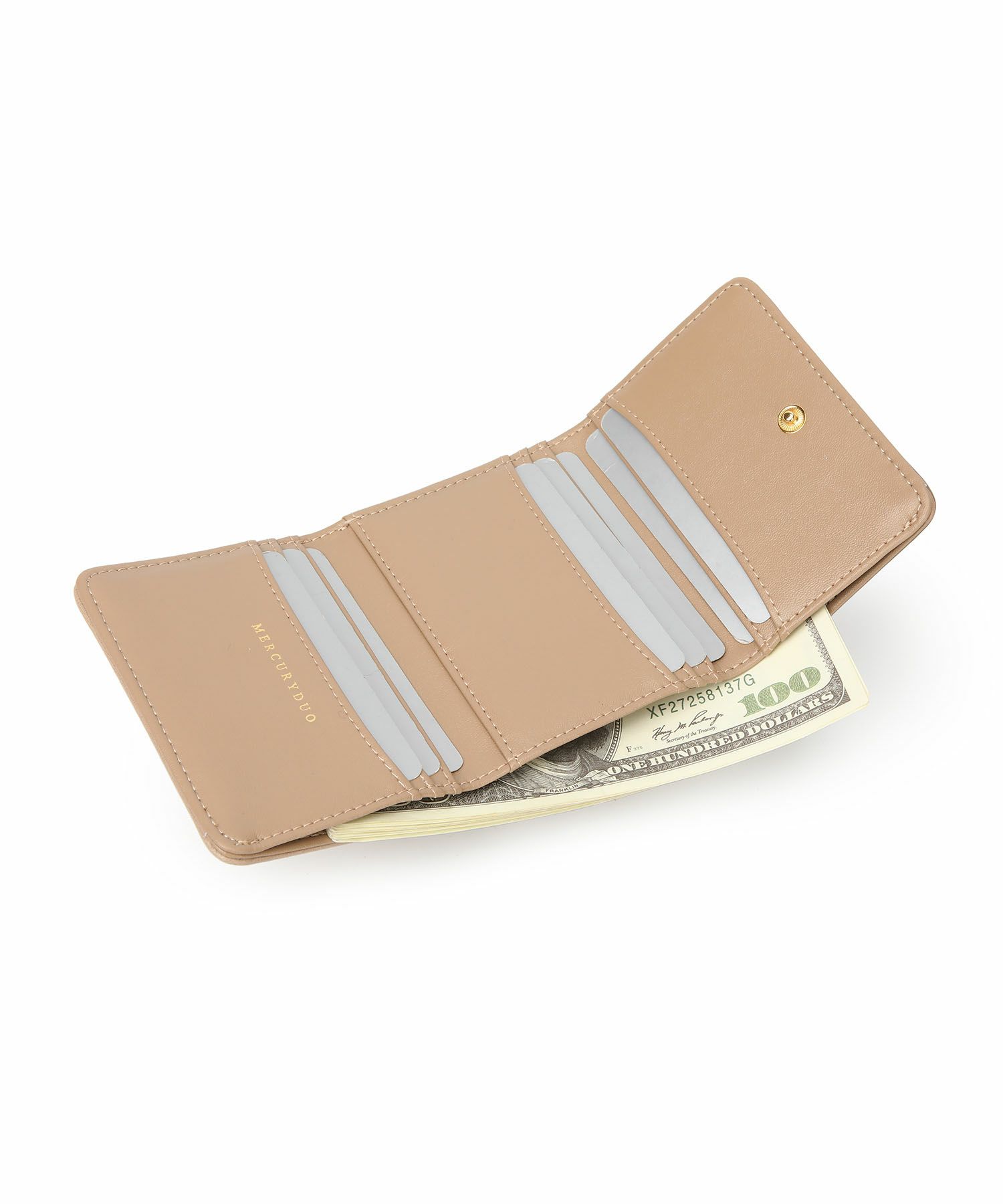 手の平に収まるコンパクトサイズながら、お札も小銭もしっかり収納できる実用性にも優れたデザインです。