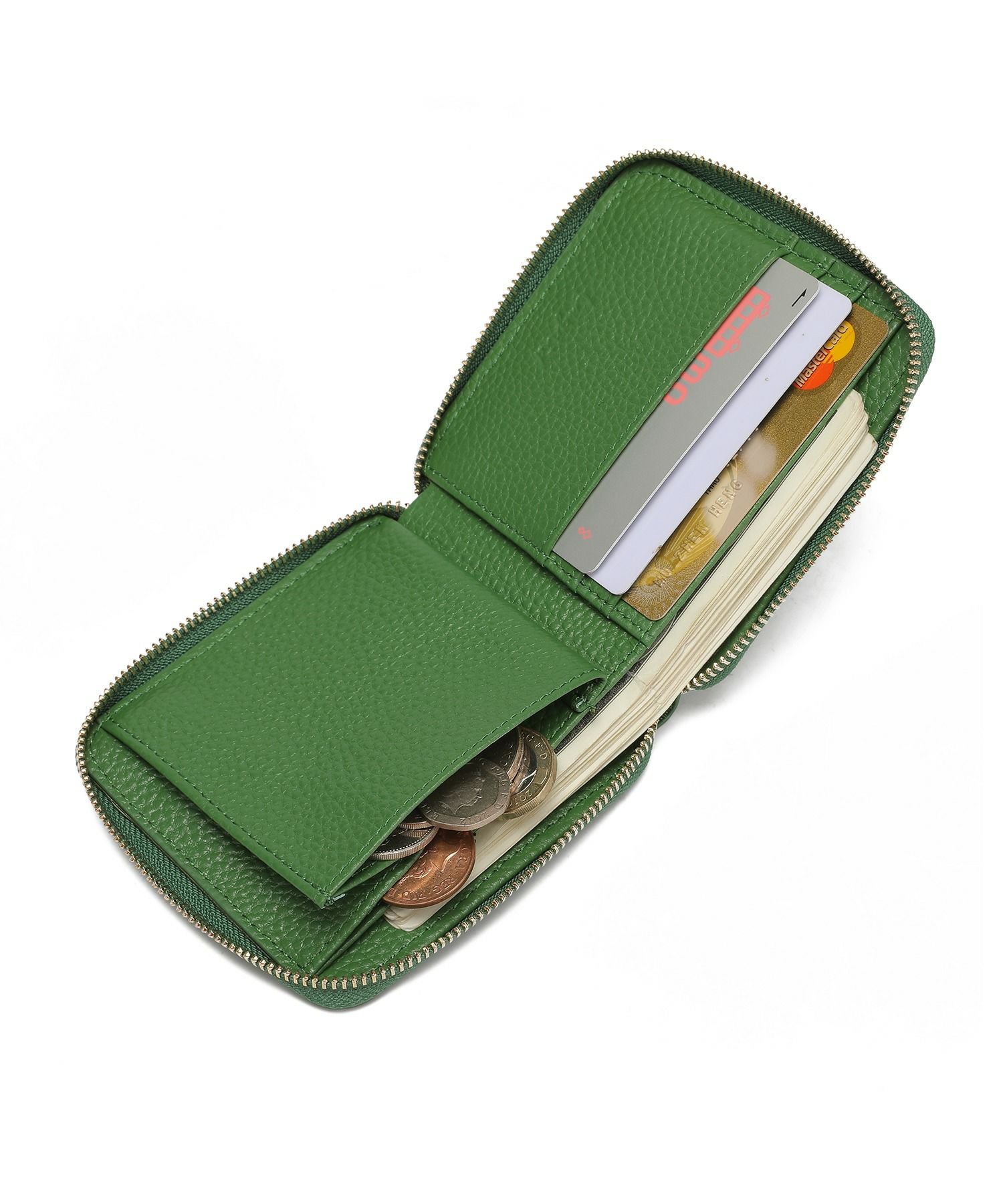 牛革 薄型 ラウンドファスナー 二つ折り ミニ財布