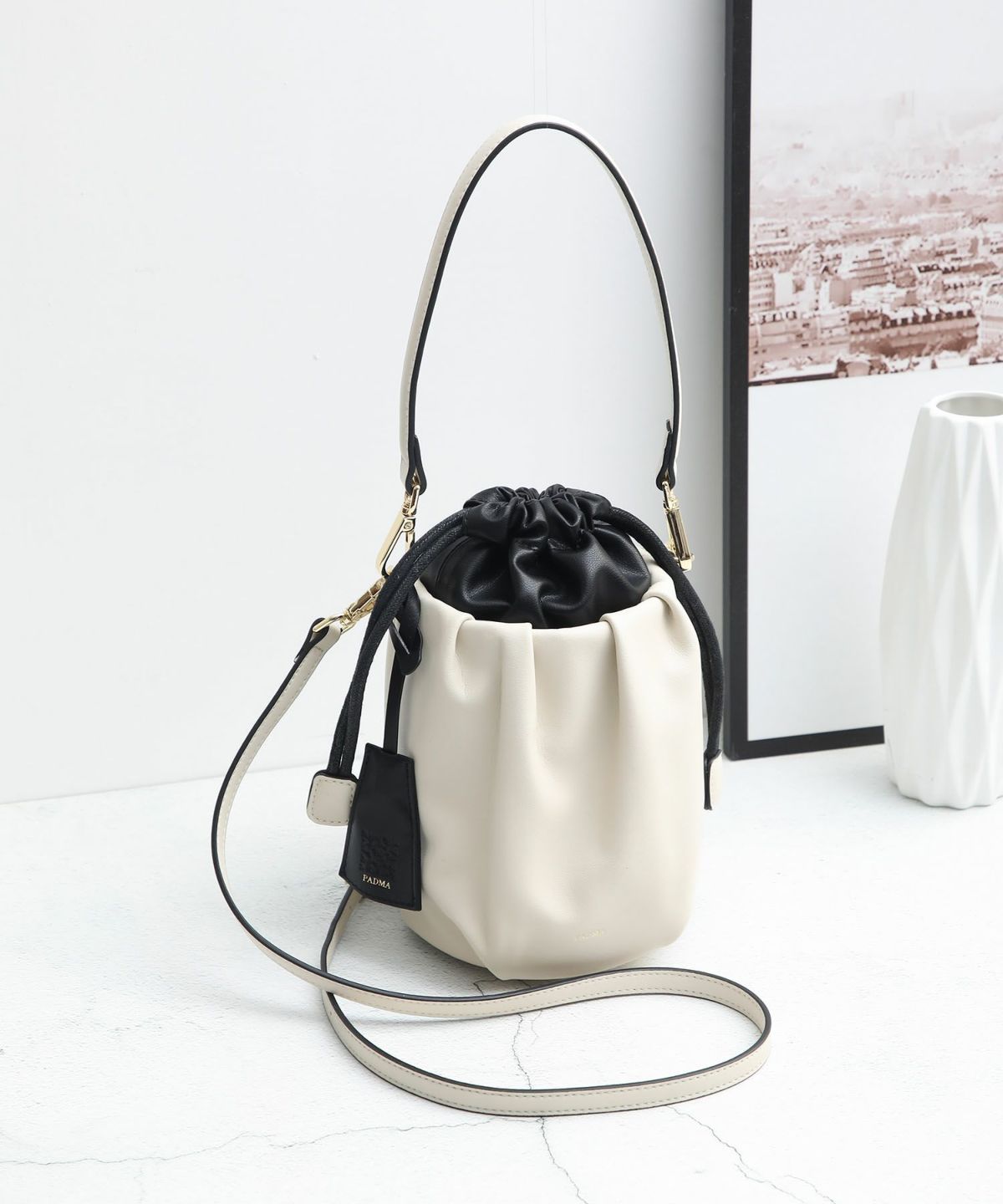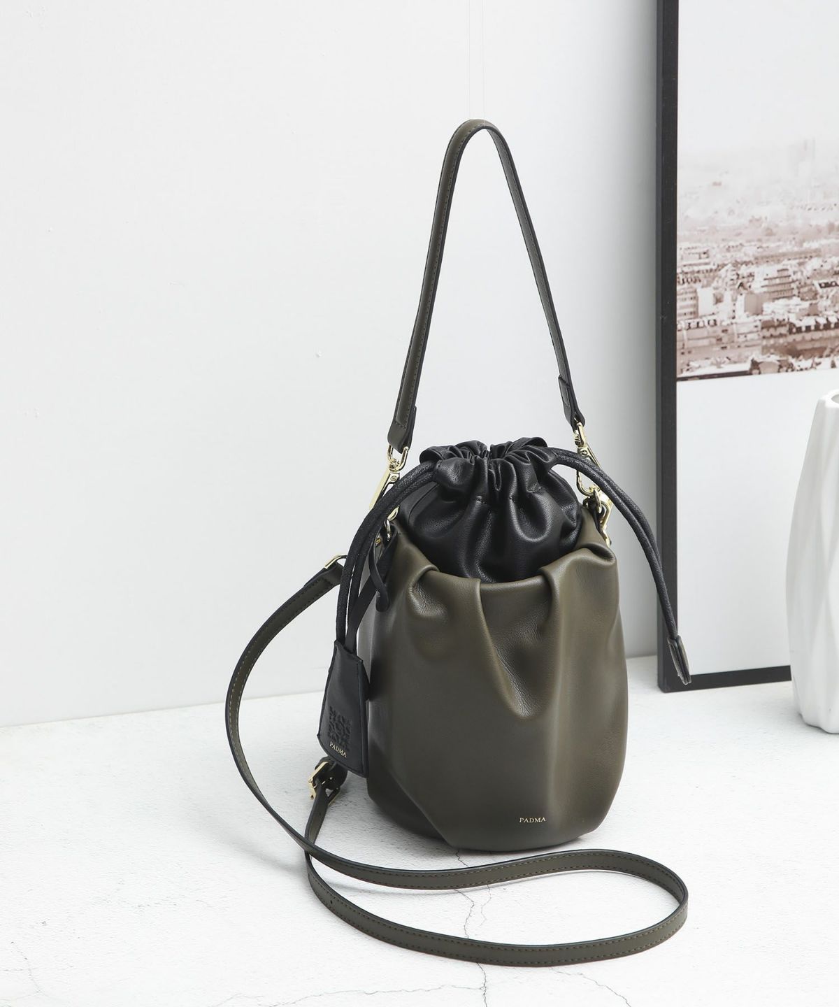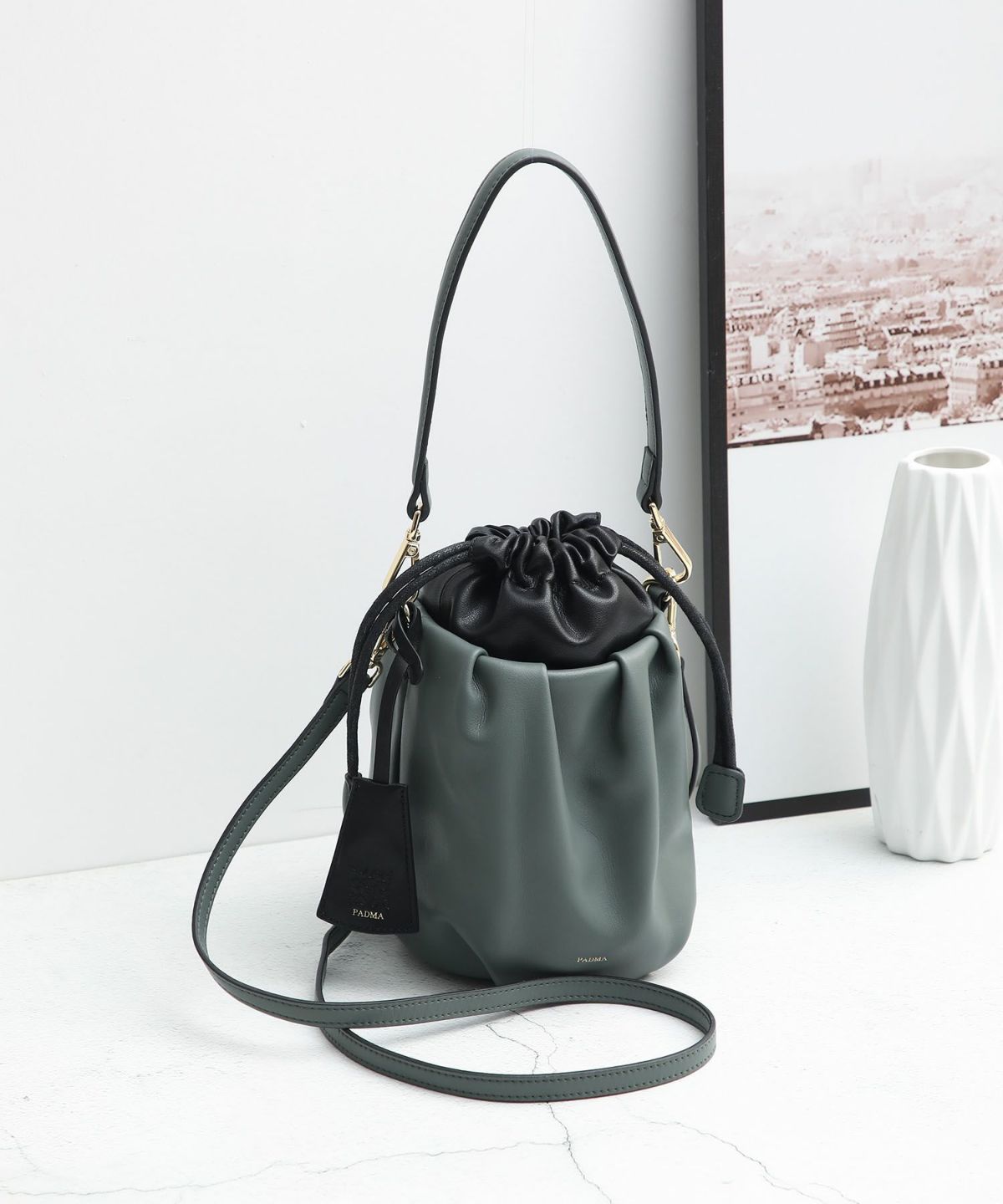 他の画像を見る PADMA リアルレザ ギャザーミニ巾着ショルダーバッグ、ミニポシェット ¥ 11,000 税込 在庫切れ バケツ型のリアルレザー巾着バッグで高見えコーデが決まる! カートに入れる お気に入りに登録する