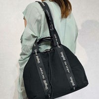 撥水軽量ソフトナイロン ロゴテープ 巾着トートバッグ