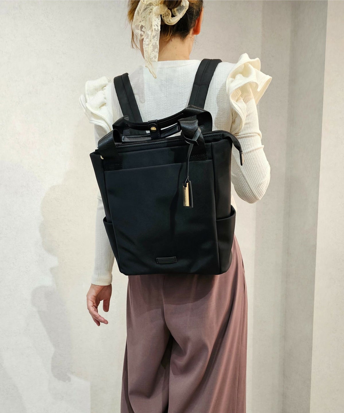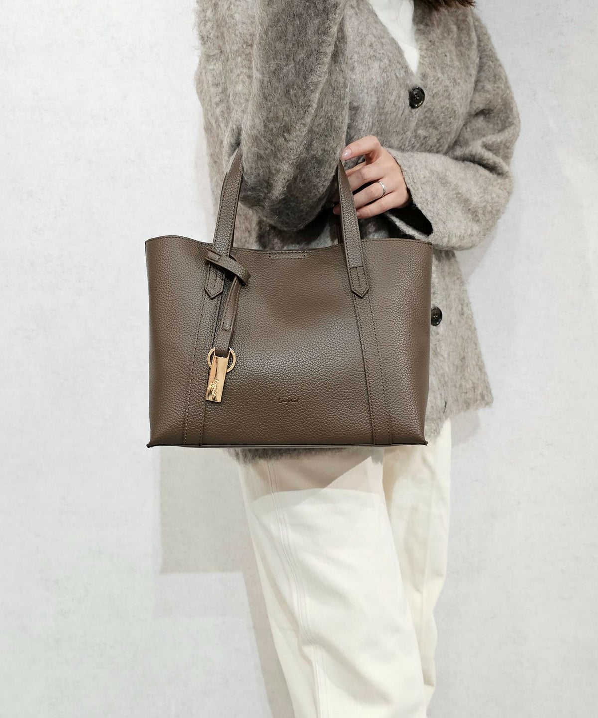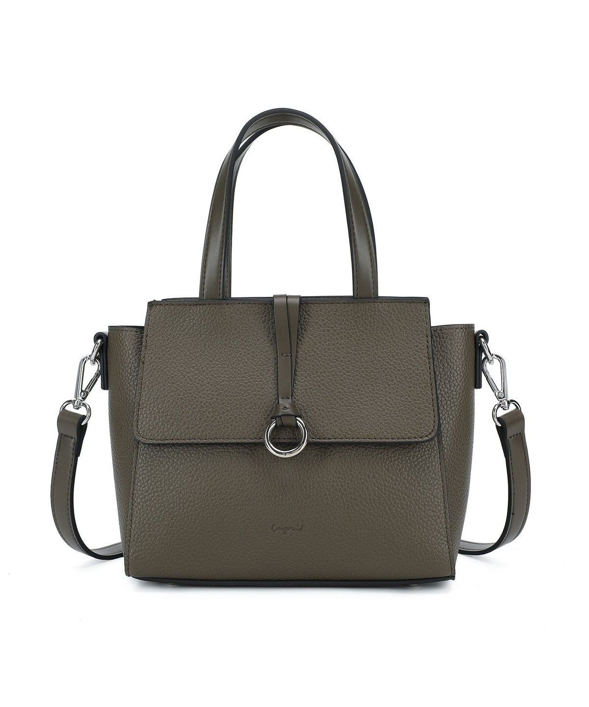 プレートキーリング付き 軽量シュリンクミディアムハンドバッグ