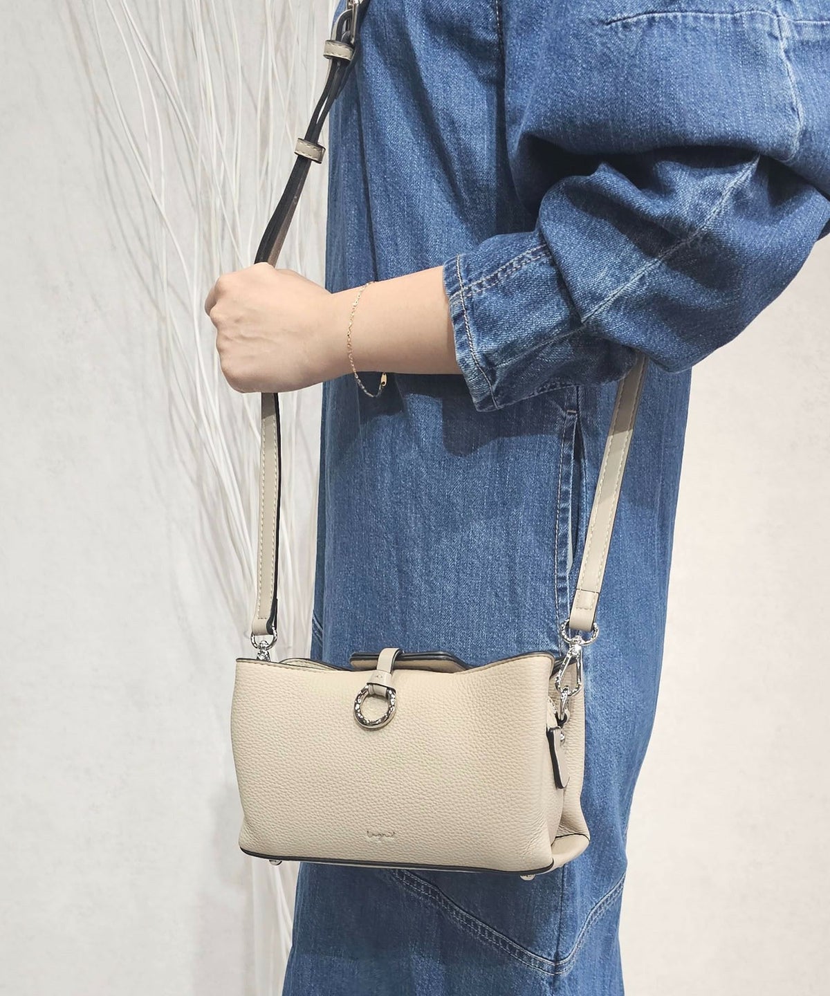 両アオリポケットハンドバッグ プレートキーリング付き ミニショルダーバッグ