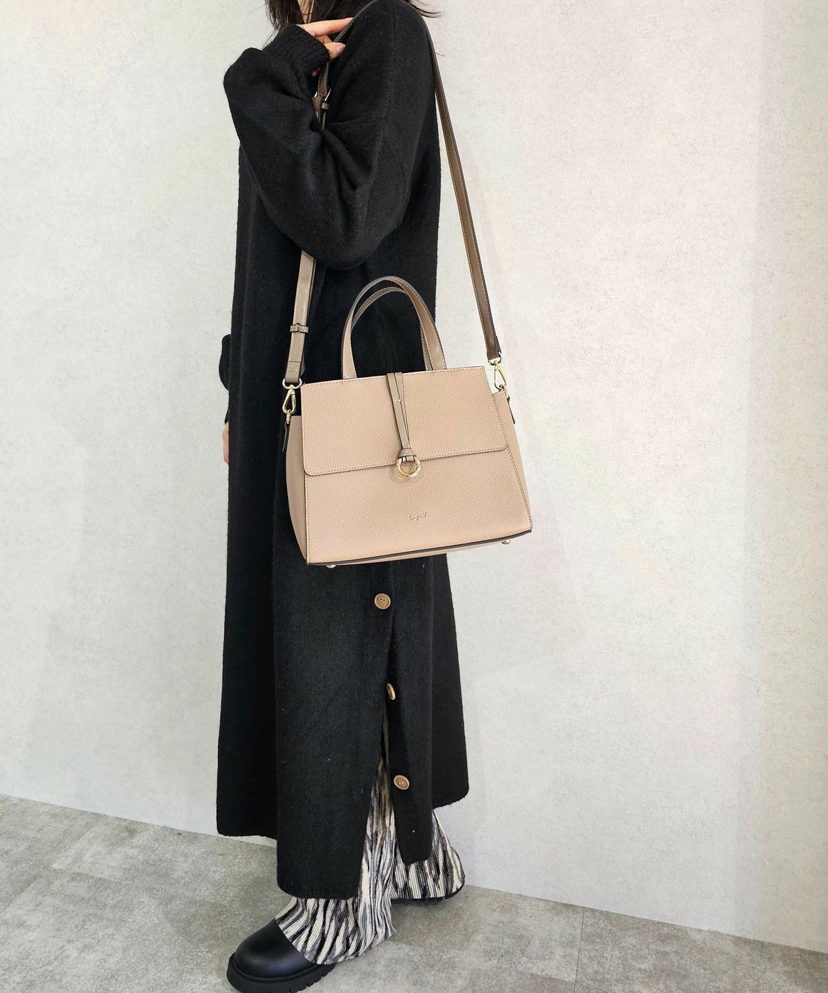 リング 軽量シュリンク Wフラップミディアムハンドバッグ